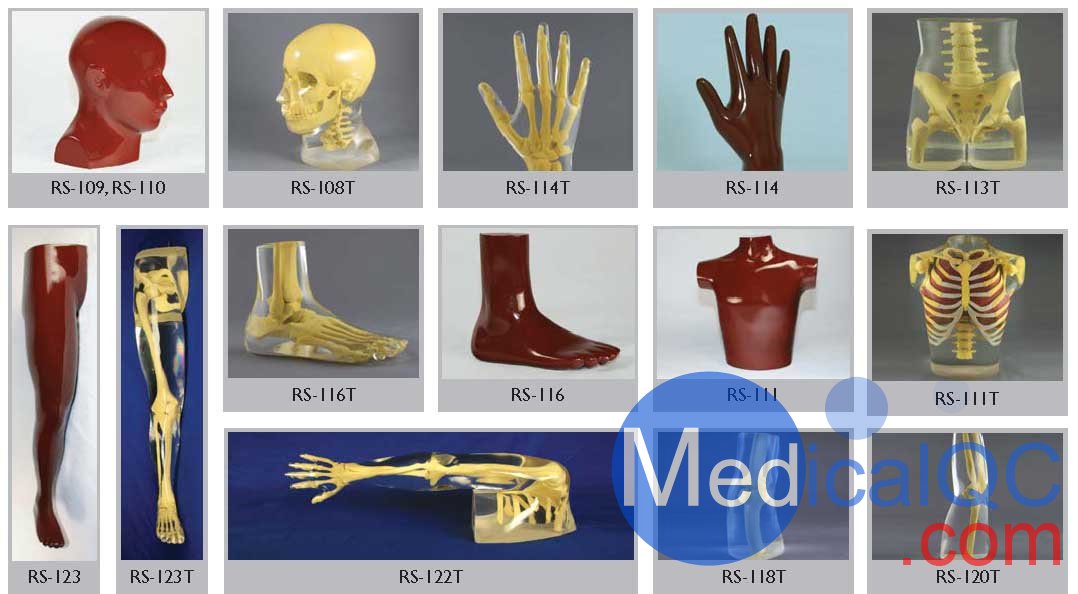美國RSD人體部分模體,RSD RS-114T手臂模體,RSD RS-123T腿部模體提供透明和不透明模型。