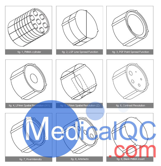 SedentexCT IQ牙科CBCT模體,SedentexCT IQ牙科模體由一個(gè) PMMA 圓柱體(直徑 160 mm)組成,該圓柱體帶有用于容納測試插件的凹槽(圖 1)。在氣缸體內(nèi)具有以下測試的功能: